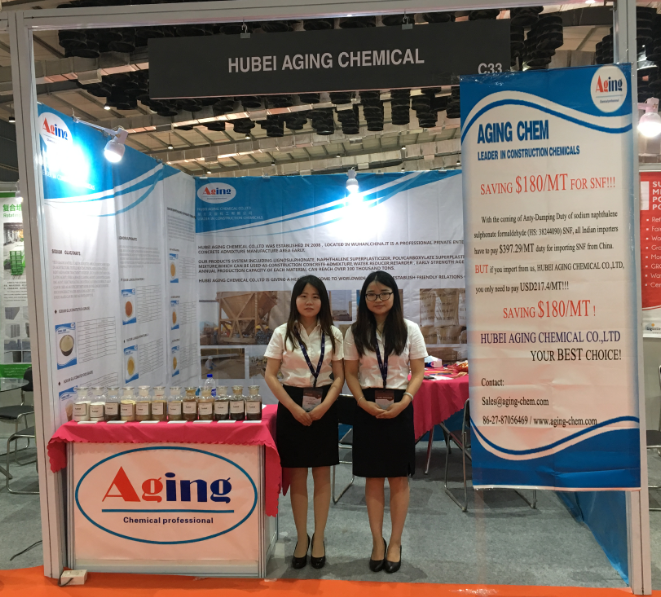 眾所周知,本年度印度海關(guān)開(kāi)始對(duì)SNF產(chǎn)品征收反傾銷稅,對(duì)中國(guó)供貨商來(lái)說(shuō),出口業(yè)務(wù)變得異常艱難,在這種嚴(yán)峻的形勢(shì)下,艾金化工堅(jiān)持參加印度展會(huì)。 展會(huì)于2018年5月24日到5月26日在印度國(guó)際會(huì)展中心隆重舉行,本屆混凝土展成功吸引了來(lái)自世界各地的200多家展商,專業(yè)買家近一萬(wàn)多人,是印度地區(qū)致力于混凝土建筑領(lǐng)域的專業(yè)大展。